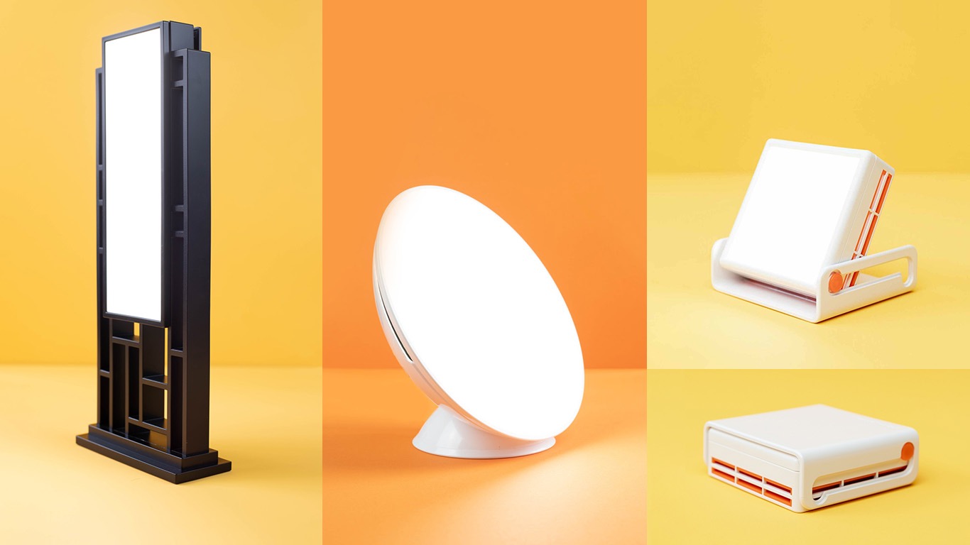 Circadian Optics makes light therapy lamps in a range of sizes and price points — we've worked with them for years and have designed several products in their lineup. The challenge with a line that spans different form factors is that you can't just make everything look the same. A small desk lamp and a large floor lamp have completely different engineering constraints and use cases.